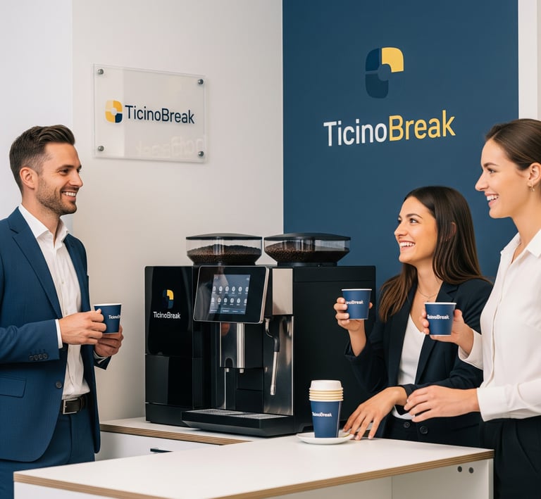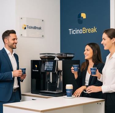 TicinoBreak offre soluzioni complete per la pausa in ufficio: Macchine da caffè a grani in comodato d’uso gratuito e distributori automatici di bevande calde e fredde per uffici e PMI in Ticino, con servizio professionale e assistenza inclusa.